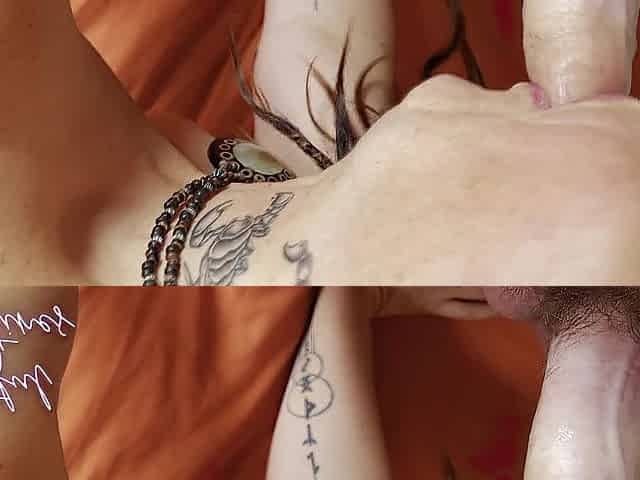 Tattooed guy shows busty woman impressive orgasms