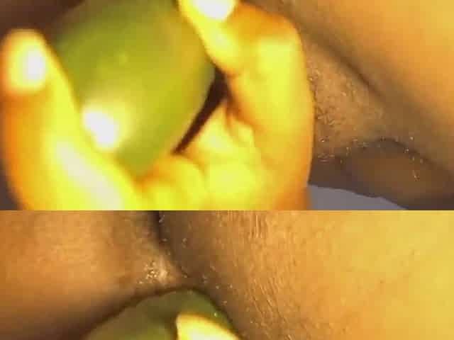Screwing my lustful cunt with large cucumber
