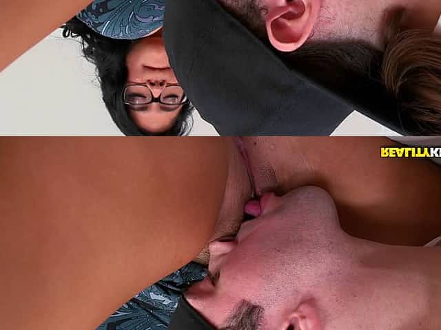 Face fucking a brunette with glasses and throbbing her twat