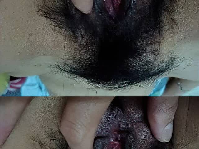 My hairy mature girlfriend show their cunt close up