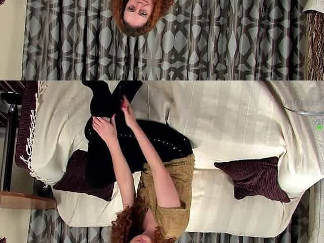 Tight redhead teen Tia Jones masturbates in high heels and stockings