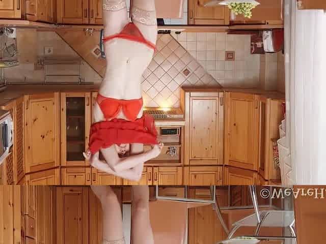 Alise strips off her sexy red dress in her kitchen - WeAreHairy