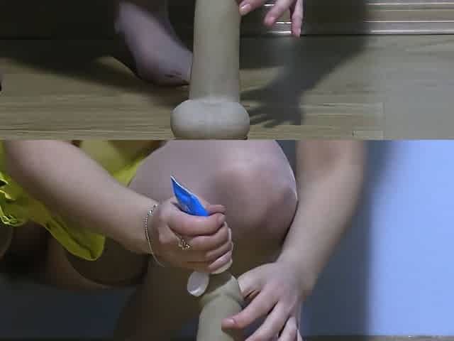 anal with a dildo busty young baby with a hairy pussy, greased with cream