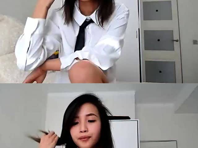Asian schoolgirl strips and toys hairy pussy solo