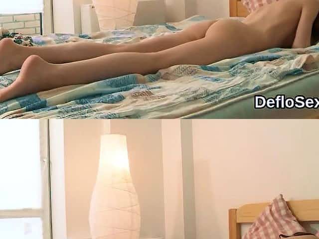 Pretty teenie gapes tight twat and loses virginity