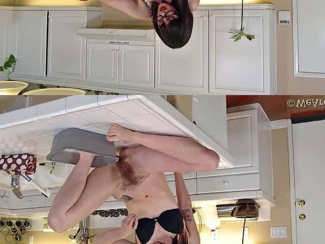 Thelma Sleaze washes her hairy pussy in kitchen