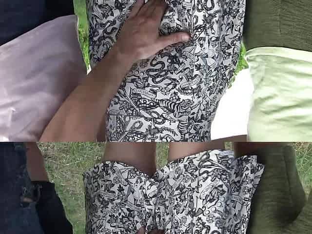 The mature woman is already warming up outdoors to entice her hot hairy pussy to fuck with her husband
