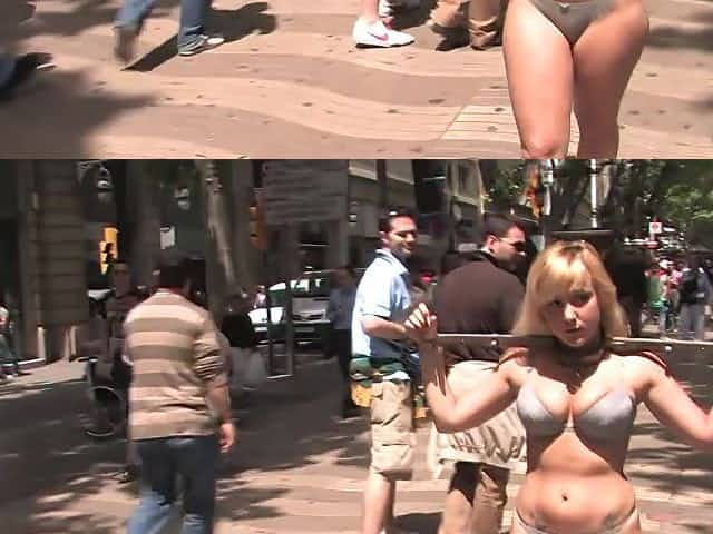 Slaved girl walks naked in public places for her master delight