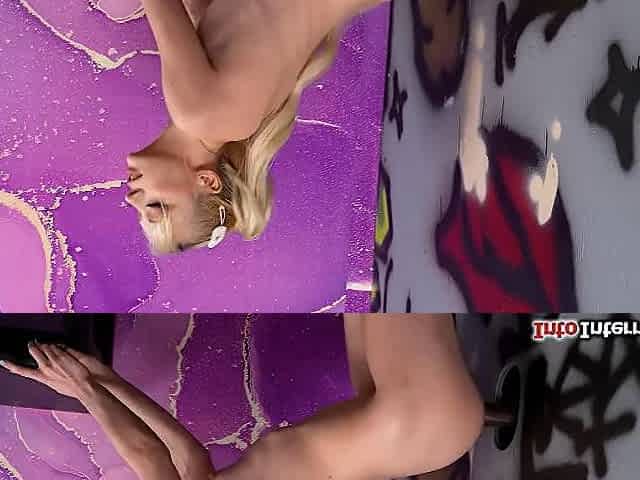 Petite blonde Cecelia Taylor sucks bbc through a glory hole