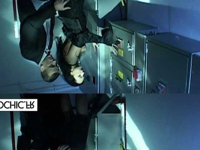 Nice brunette fucked at the office in a high voltage room