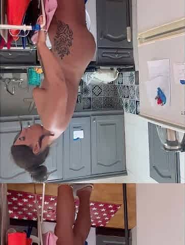 Horny maid naked cleaning