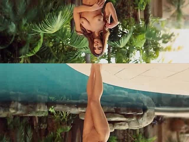 A brunette playing with fishes with her amazing tits hanging out