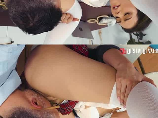 Petite teen with big tits gives a sensual massage & fucks hard in the massage room