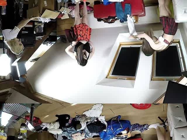 Trying on new shirts completely naked in a public dressing room