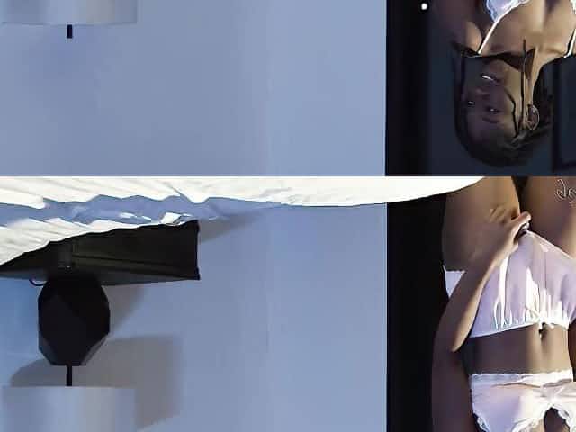 Kinky young ebony model Hazel Grace is touching her shaved pussy