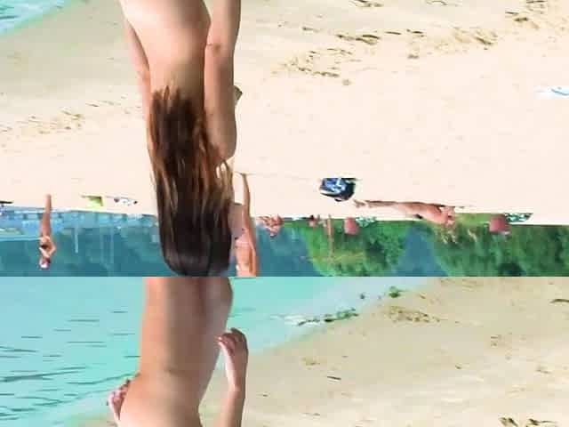 Brunette nudist teens caught on camera naked at the beach