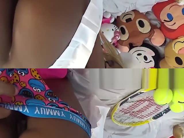 Two babes in sexy underwear finger fuck and toy each others wet slits
