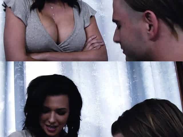 Horny busty MILF stepmom accepts a help from her boy