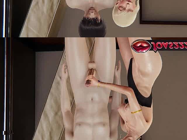 Blonde Waifu Anime Girl in 3D - Handjob for Big Dick, Only Tongue Dick Licking Blowjob, and on Top Teasing Titjob with Cumshot