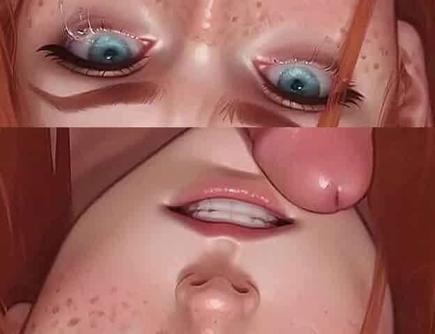 Animated girl gets mouth filled with sperm