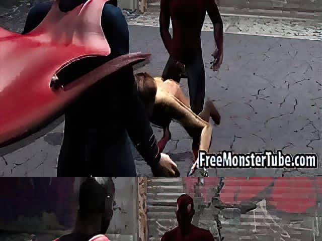 Two hot 3D babes getting fucked hard by Spiderman