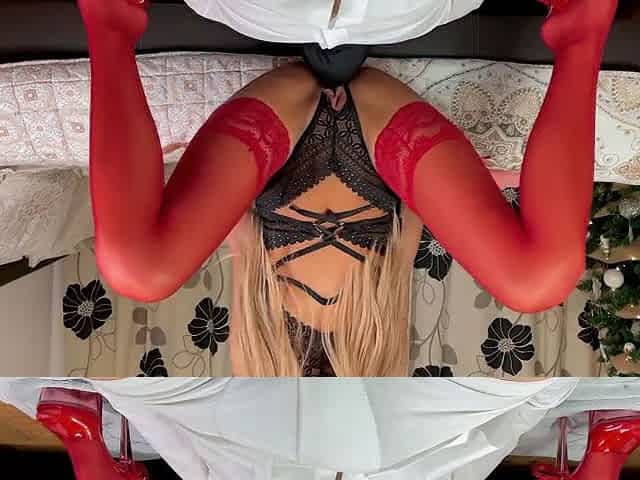 Blonde hentai mistress pussy smashing her sex slave