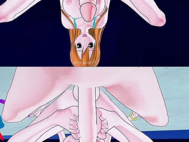 Nami gives you a POV foot job until you cum on her big tits - One Piece Hentai.