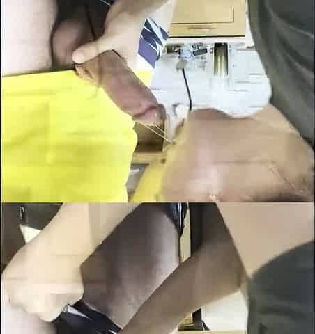 Caught in the act - your new boss gets down at work and takes a load on her tits