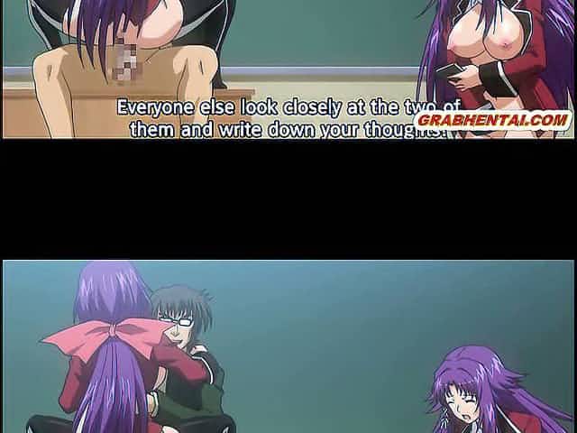 Big titted hentai schoolgirl rides hard cock in classroom