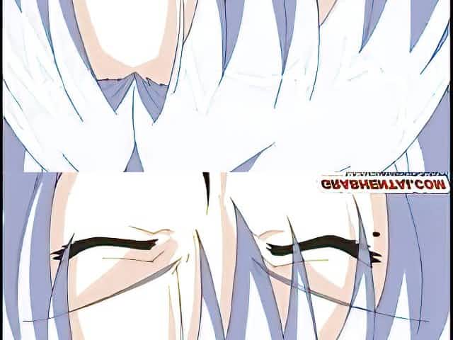 White hair hentai guy touching innocent guy