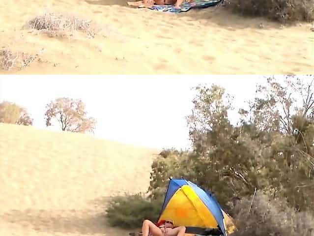 Voyeuring horny nudist girl fingering in public