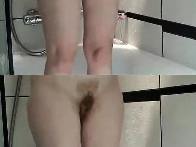 Girl with a hairy pussy showering off