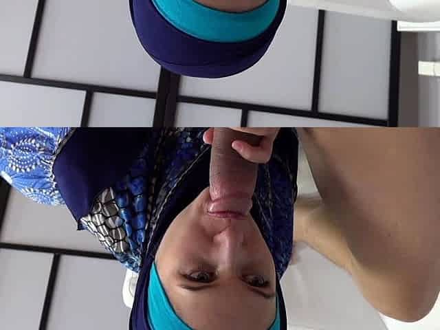 Sexy babe in blue hijab loves to play with hard dick