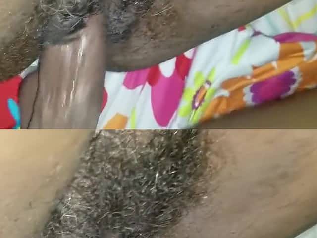 Darksome sweetheart with incredibly hirsute slit is screwed in bedroom