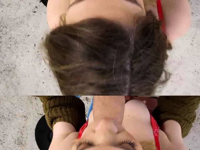 Cum hungry slut picked up to suck a hitchhiker's big cock in the back of a van