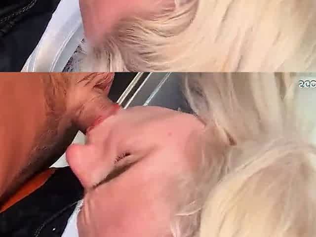 Hitchhiker picked up by blonde for car sex