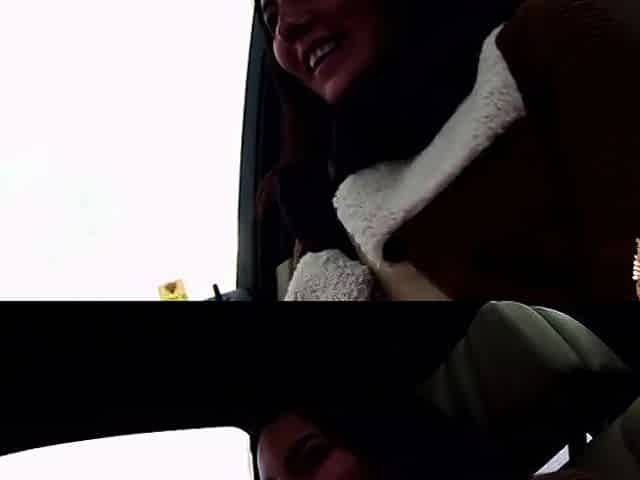 Young brunette hitchhiker gives an adventurous blowjob