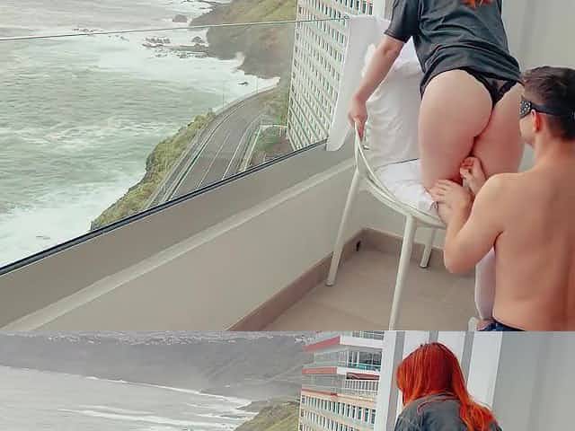 First Sex on Vacation - He CUMS in 30 SECONDS! Hotel Balcony Ginger PAWG