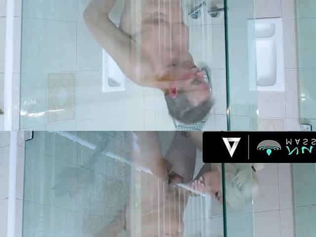 Split-Screen Bath Pegging Session with Bottom View - Latin Chick Pair