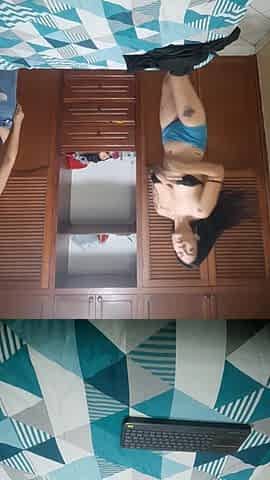 whilst this babe was putting the clothing away, I was playing with myself and things escalated into sex