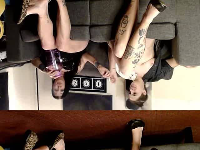 Lesbians going at it with scissors and a cable, nonstop action