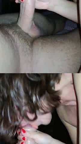 Big tits homemade brunette gets a handjob from a stud