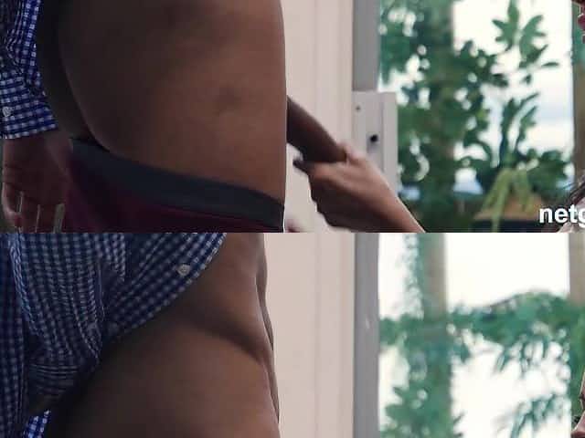 Afro hooker gives rimjob and blows white dick