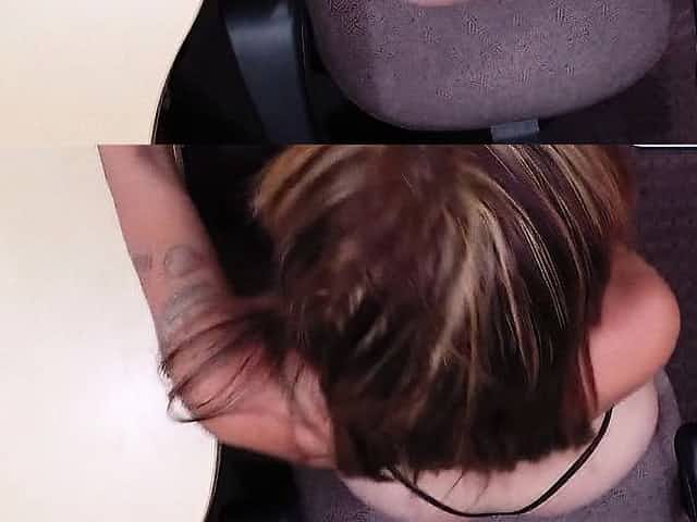 Horny bitch masturbating in car for truck driver