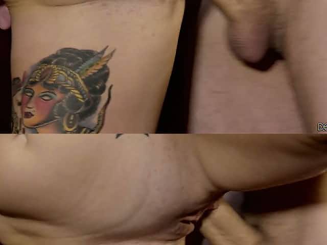 Young pierced tattoed horny bitch deepthroats and gets fucked
