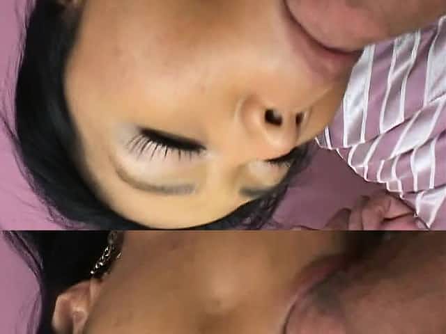 A horny Asian bombshell gets into a threeway with a stud and hot girl
