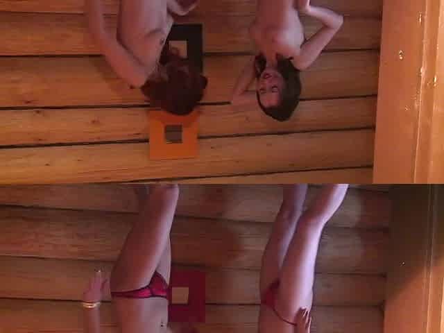 Lesbian hot bitches play with pussies while scissoring