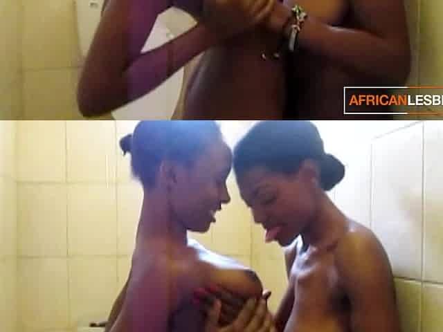 2 hot black lesbians licking each other in bathroom
