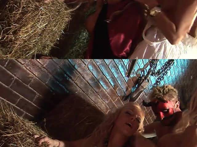 Pair of sexy blonde chicks getting fucked in the dungeon