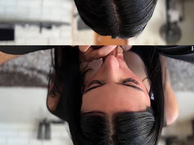 chica depilando a un cliente de polla grande en la ducha pervertida